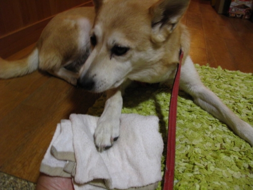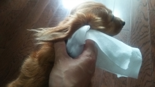 実際散歩から帰ってきたので、洗浄スプレーを使用しました 最初はスプレーの噴霧にびっくりして近づいてくれなかった日がありましたが、 帰ったら拭くのルーティンで徐々にスプレーに慣れてきました 毎日手足は拭いていたので拭くこと自体には問題はもともとありません 直接足に吹きかけると怖がるので… 2016/08/31