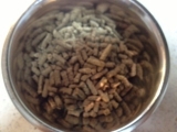 原材料は、生鮮品を仕入れ、肉ならばその都度ミンチに、穀物なら製粉しています。生肉の仕入れ量にも限界があり、大量生産ではなく、ひとつひとつ心をこめて作り上げる努力をしています。 良いフードを作る為に、加工の時の温度を90℃以上に上げません。肉を焼く温度よりも低く、タンパク変性がしにくい温度帯でのゆっくりとした乾燥の工程で大規模な生産工場ではできないこだわりです。 着色料、香料、製造助剤、保存料等全て無添加、再生油(廃油)は使わず、新鮮な生肉をそのまま練り込んだ、愛犬の健康を第一に考えたフードです。 |
