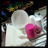 昨日、ゴム手と綿手のことを書いたので、 洗いものつながりで、今日は洗い布のこと ふだん自宅では、祖母が編んでくれたアクリルたわし(たわし?)を 大切に使っているんだけど、 (なかなかへたらないので替え時が難しいんだわ、これが) 勤務先での洗いものに困っていたので、 食器洗いスポンジならぬ、食器… 2013/02/01