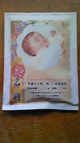 赤ちゃんのお写真と、80種類以上のテンプレートで作ったデザインをお子様の出生体重で作ったお米に印刷!