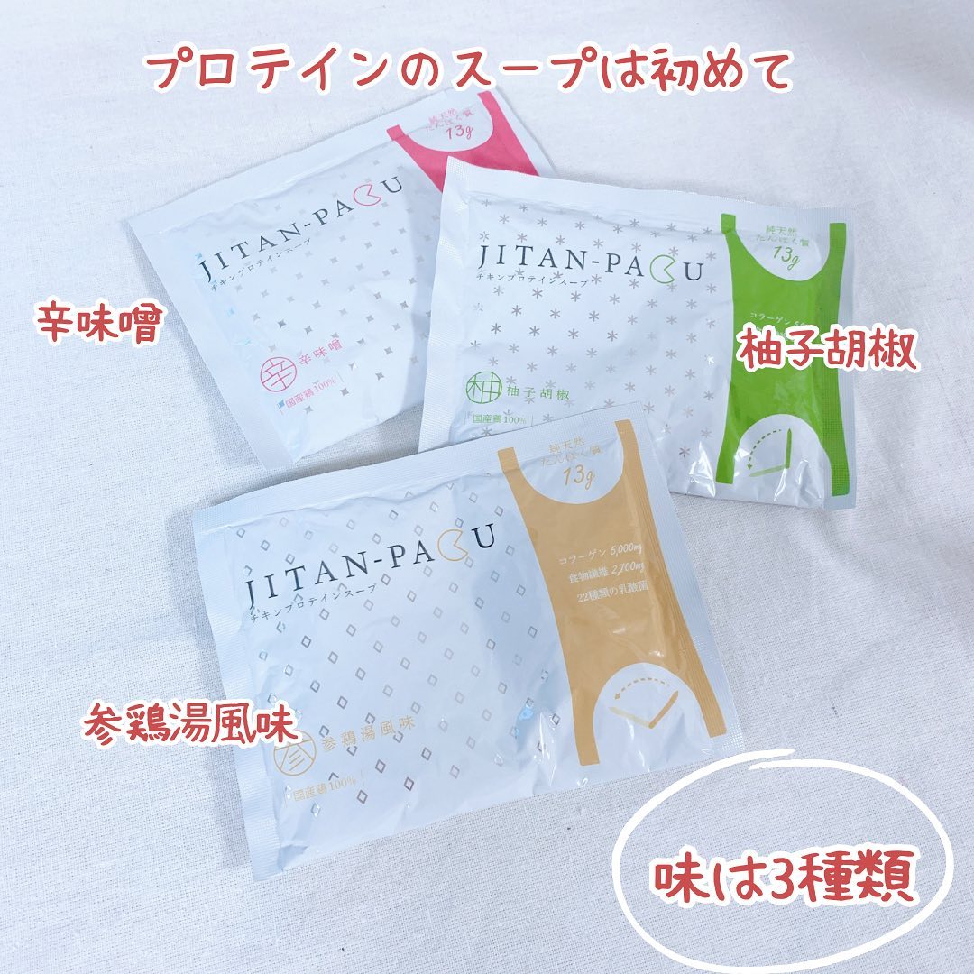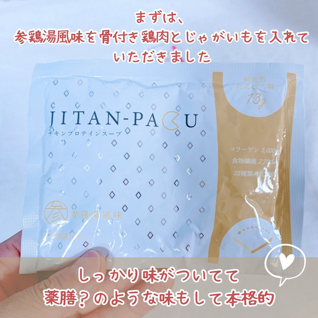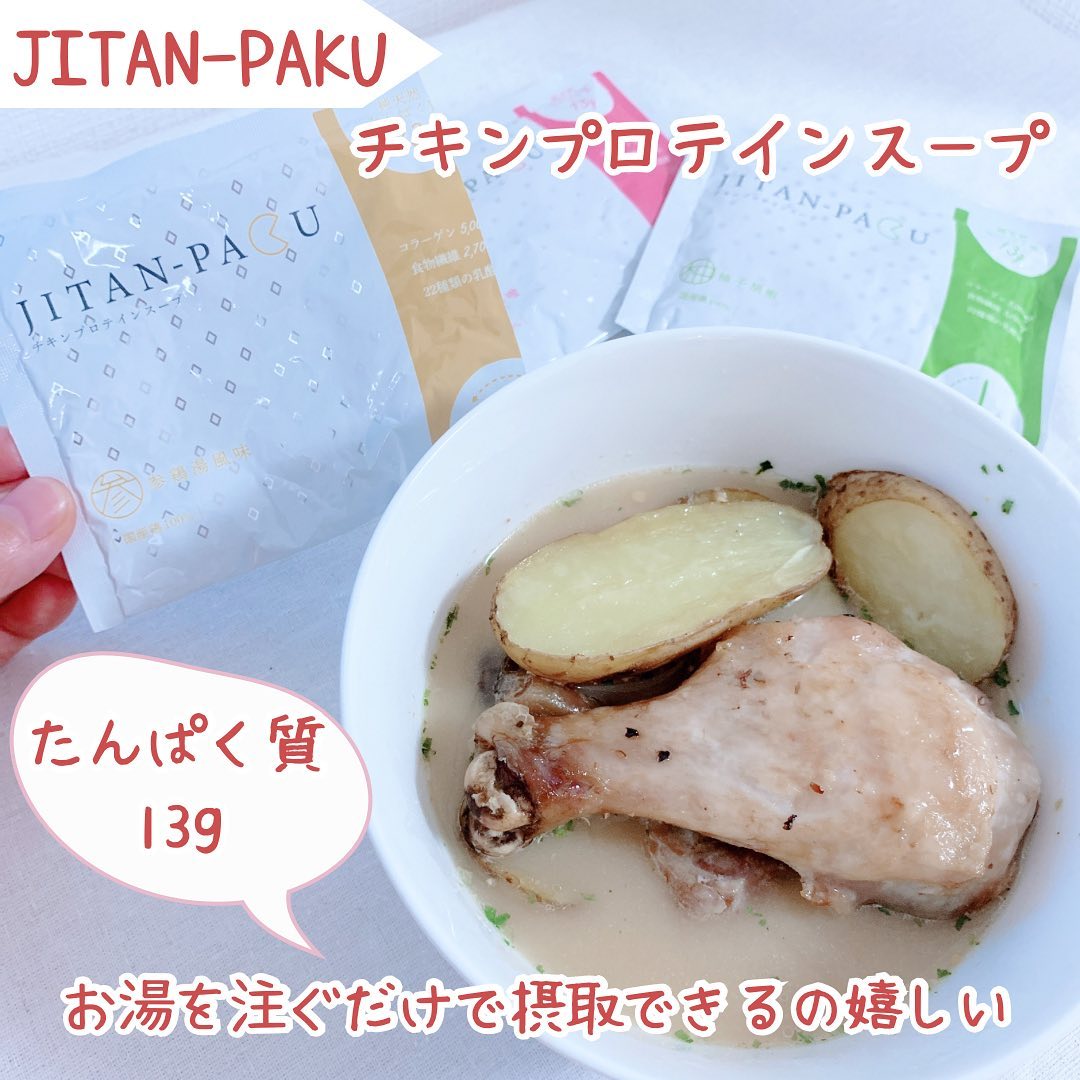 JITAN-PAKU チキンプロテインスープ🎗️ プロテイン大好きになり いろんなタイプ・味を試してます🙌🏻 でも、スープは初めて✨ たんぱく質13gを お湯を注ぐだけで摂取できるの嬉しい👏🏻 味は3種類 🥣柚子胡椒 🥣参鶏湯風味 🥣辛味噌 まずは、 参鶏湯風味を骨付き鶏肉とじゃがいもを入れて いただきました👍🏻 しっかり味がついてて 薬膳?のような味もして本格的😋 次は、オートミールを入れて食べてみます🙌🏻 #PR #日本予防医薬 #じたんぱく #JITANPAKU #スープ #スープレシピ #鶏むね肉 #プロテイン #プロテインスープ #プロテインダイエット #プロテイン生活 #タンパク質 #たんぱく質 #時短 #monipla #imida_fan
