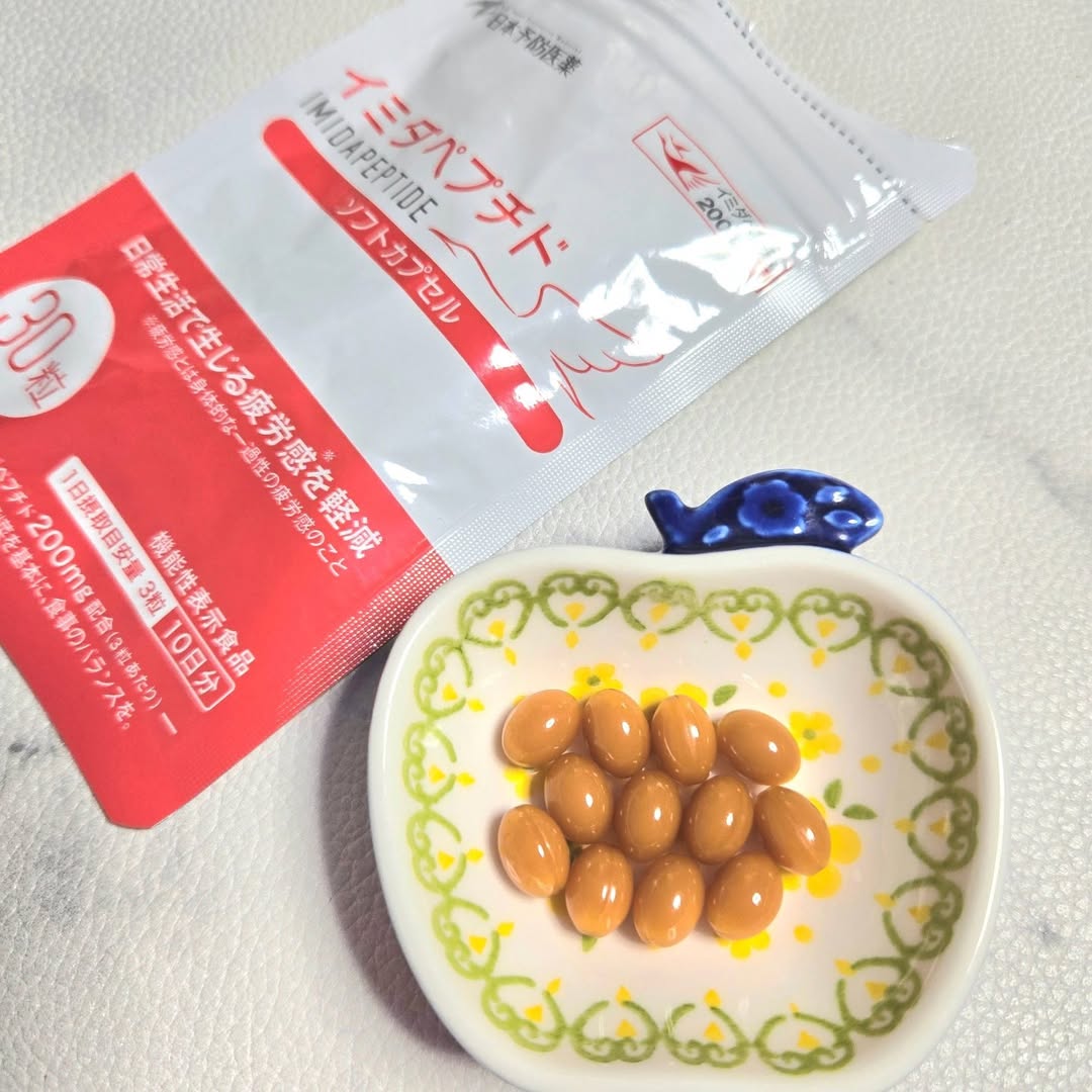 ⋆ ぐったりヘトヘト対策サプリ! / イミダペプチドソフトカプセル おためしサイズ30粒 \ ぐったりのメカニズム 増えすぎた活性酸素が元気な細胞も傷つけてしまうことなんだって その増えすぎた活性酸素を抑える成分がイミダゾールジペプチド これってもともと人の体にも存在する成分らしいけど、30代をピークに年齢と共に減っていくんだって それを補ってくれるのがイミダペプチド 1日3粒目安 ソフトカプセルなのでツルンと飲みやすかったよ ありがとうございました♡ #PR #日本予防医薬 #日本予防医薬 #イミダペプチド #イミダゾールジペプチド #イミダペプチドソフトカプセル #monipla #imida_fan