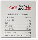エネルギー24kcal、タンパク質1.3g、脂質0g、炭水化物4.8g、ナトリウム19mg、イミダペプチド成分200mg、コエンザイムQ10 100mg |