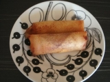 モニプラの井村屋さんの企画でいただいた「ゆであずき」で先日「白玉クリームあんみつ」を作りましたが、今日は「ねりあん(210g)」を使って、あんこ&バナナの春巻きを作りました 市販の春巻きの皮に、こしあん(ごま油少々を混ぜる)、バナナ(縦半分に切り、さらに横半分に切ったもの)をのせて巻き、揚げまし… 2010/08/20
