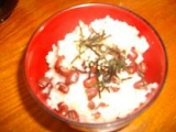 こぶたちゃんのお誕生日を 井村屋さんから頂いたお赤飯 でお祝いしました 嫁が赤飯好きということで、3合分2袋を5.5合炊きとして小豆多めにしたのです 2011/05/22