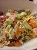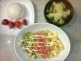 今日の夜ごはん(^_^) カフェ風チャーハン ニラ玉スープ あんまん&イチゴ カフェ風チャーハンは、ひき肉、玉ねぎ、人参、しめじをカレー粉等で炒めご飯も投入してチャーハン完成 お皿に盛りつけたあとにアボカド、いり卵、トマトをのせ、マヨをかけてできあがり(^^… 2012/02/20