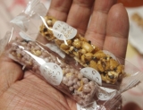 | あずきスティック 北海道産小豆の甘み広がる サクッと食感のお菓子です。 ●内容量:8本 ●カロリー:21kcal/1本あたり | 五穀スティック 玄米・小麦・あわ・ひえ・黒ごまを使用したサクサク食感のお菓子です。 ●内容量:8本 ●カロリー:20kcal/1本あたり | ||