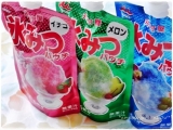 井村屋の新商品 パウチ氷みつ 3種 イチゴ メロン ハワイアンブルー イチゴ味のカキ氷シロップ アイスクリームやヨーグルトなどのトッピングにも メロン味のカキ氷シロップ ヨーグルトのソースやチューハイの味付け、メロンソーダにも ハワイアンブルー味のカキ… 2014/08/18
