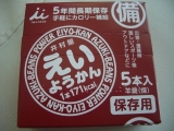 今年の目標の中にある、防災グッズの見直し今回はその中の、非常食の見直しとして井村屋さんから発売されている「えいようかん」を非常食として追加しましたこちらひと箱に「羊羹」が5本入っています非常食用として作られているので箱にも、いろいろな工夫がされているところが◎災害用伝言ダイヤルの利用方法が書… 2012/04/01