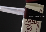 ☆化粧箱の開け口のつまみは、暗所でも手触りで解りやすいように設計しています。また、化粧箱表面の点字で中身が羊羹であることをご案内しています。