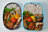 おべんと♡こべんと♡*こべんとう*(息子弁当)大豆ひじき御飯おにぎり蒟蒻煮付けウインナーwithお野菜うずら卵揚げコロッケプチトマト新幹線のハムチーズ葡萄ゼリー×メロンゼリーwithフルーツ*おべんとう*(母弁当)大豆ひじき御飯おにぎり(豆苦手やから1粒だけ大豆入れるw)牛蒡煮ハムマヨコロッケうずら… 2013/04/12