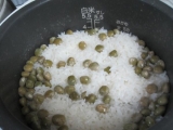豆好き星人の息子ちゃん大喜びの豆ごはん自分で作ろうと意外と難しかったりするんだけど、コレは、3号分のお米を洗ったら必要な水を入れて後は普通に炊飯器で炊くだけ豆が潰れちゃったりするのかな?って心配だったんだけど、このように潰れずちゃんと炊けました 2012/05/23