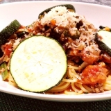 ジメジメジメジメ…雨がふったりやんだり…その度に洗濯物をしまったり出したり…忙しかったな…久しぶりにパスタが食べたいな*砂肝ミートソースパスタ砂肝を入れてザクザク歯ごたえをプラス野菜が少なかったからズッキーニもででーんと乗せちゃいました!あと隠し味に赤味噌も入れた瞬間グッと濃くが増した気がする… 2014/06/27