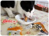 今日は22日 あぶないあぶない滑り込みセーフです 最近スマホデビューしたボク ちょちょいと検索してたら美味しそうなご飯を見つけた でも、せっかく届いたいなばさんのチャオをT兄ちゃんが独り占め ボクだって食べたいもん カリカリも缶詰も美味しそうだったけど、ウチの子たちはカリカリのほうが 食いつ… 2011/08/22