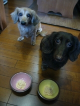 ささみのペーストに赤の野菜(人参・トマト)を加えました。
