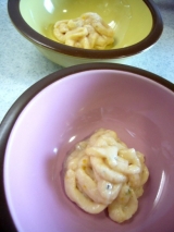 ささみのペーストに黄色の野菜(かぼちゃ・じゃがいも)を加えました。