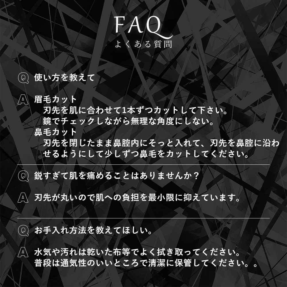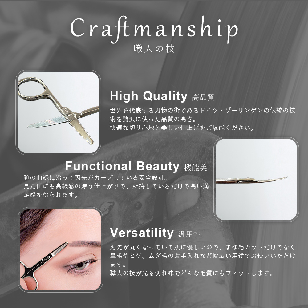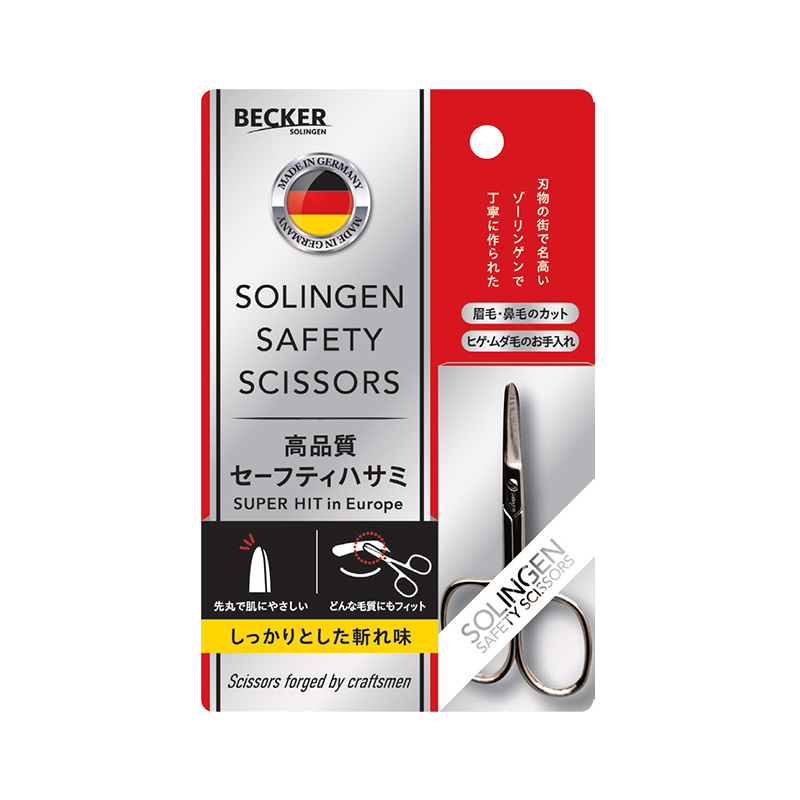 世界を代表する刃物の街ドイツ・ゾーリンゲンの熟練職人の技が詰まった高品質なセーフティハサミ。眉毛や鼻毛のカットはもちろん、ヒゲやムダ毛のお手入れにも。