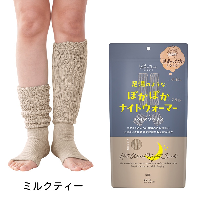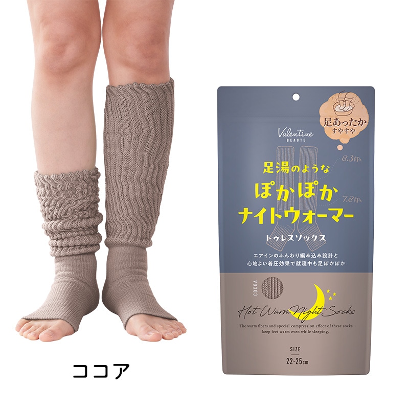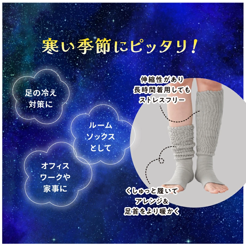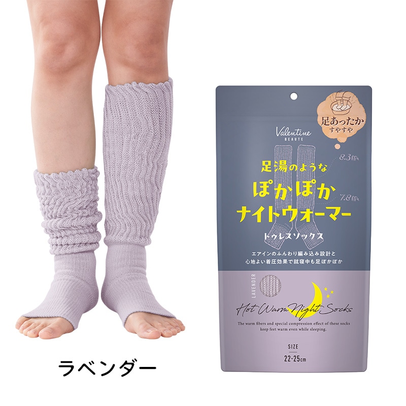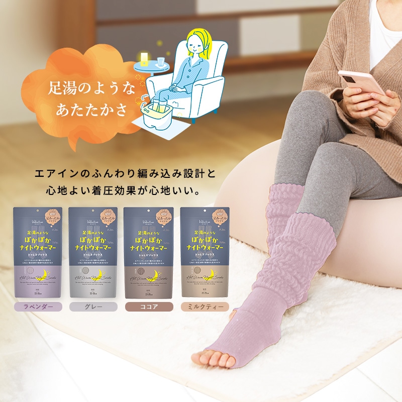 足元からじんわり温める“履く足湯”──ふんわり編みと着圧で、寝る前の冷えをやさしくケア 選べる4色(ラベンダー/グレー/ココア/ミルクティー)