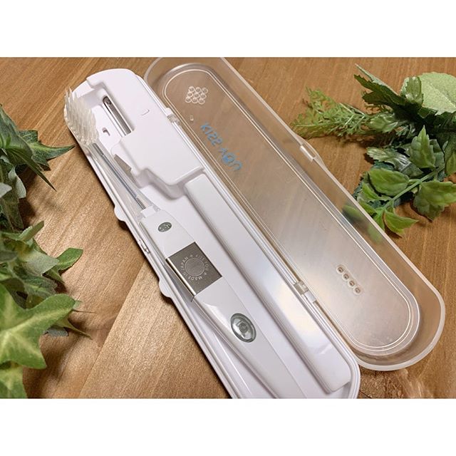 歯科医オススメのイオン歯ブラシ キスユー💕 歯ブラシからマイナスイオンが発生される事で 歯垢が剥がされ歯磨き粉無しで軽いブラッシングでも歯がツルツルになるの✨🦷 . 私は白の極細レギュラー 柔らかく細いブラシが口内をマッサージして歯周病予防にも🙆♀️ . 磨いたあとは専用の99.9% UVで除菌ができるケースに入れるだけで7分間ランプが点灯して毎日清潔な歯ブラシが使えるの💖 持ち運びにもgood⭐️👍 . . #アイオニック #歯ブラシ #マイナスイオン #キスユー #イオン歯ブラシ #monipla #ionic_fan #デンタルケア #オーラルケア #UV除菌 #歯科医オススメ