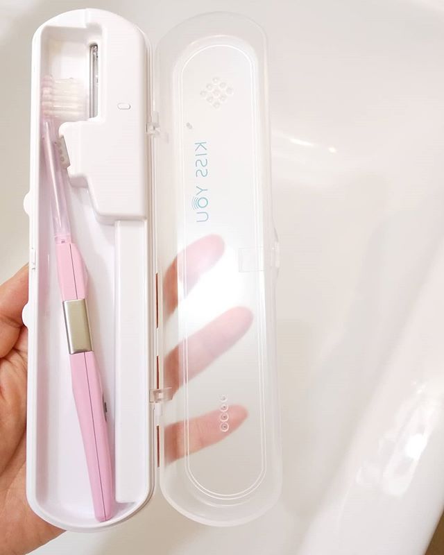 #アイオニック #キスユー #歯ブラシ をお出かけ時にも使っています🎵 こちらは#UV除菌ケース に歯ブラシがセットされています🌈 UV紫外線ランプで歯ブラシを強力除菌😆🙌✨青く光ります😻2枚目📸 ケースに入れておくだけで清潔を保てるので、お出かけ時、旅行中助かります👏 キスユーは水だけで磨いても超絶ツルツルになります❤️毛先から出るマイナスイオンが歯垢をゆるめて落ちやすくしてくれます😆 歯ブラシはドラストにも売っていますよ✨ 替えのヘッドだけもあって、極細レギュラー、極細コンパクト、ワイドヘッドの3種類あります🙌 キスユーは効果しっかりあるので、母にも教えてあげました💮 #アイオニック #歯ブラシ #マイナスイオン #イオン歯ブラシ #歯周病 #monipla #ionic_fan