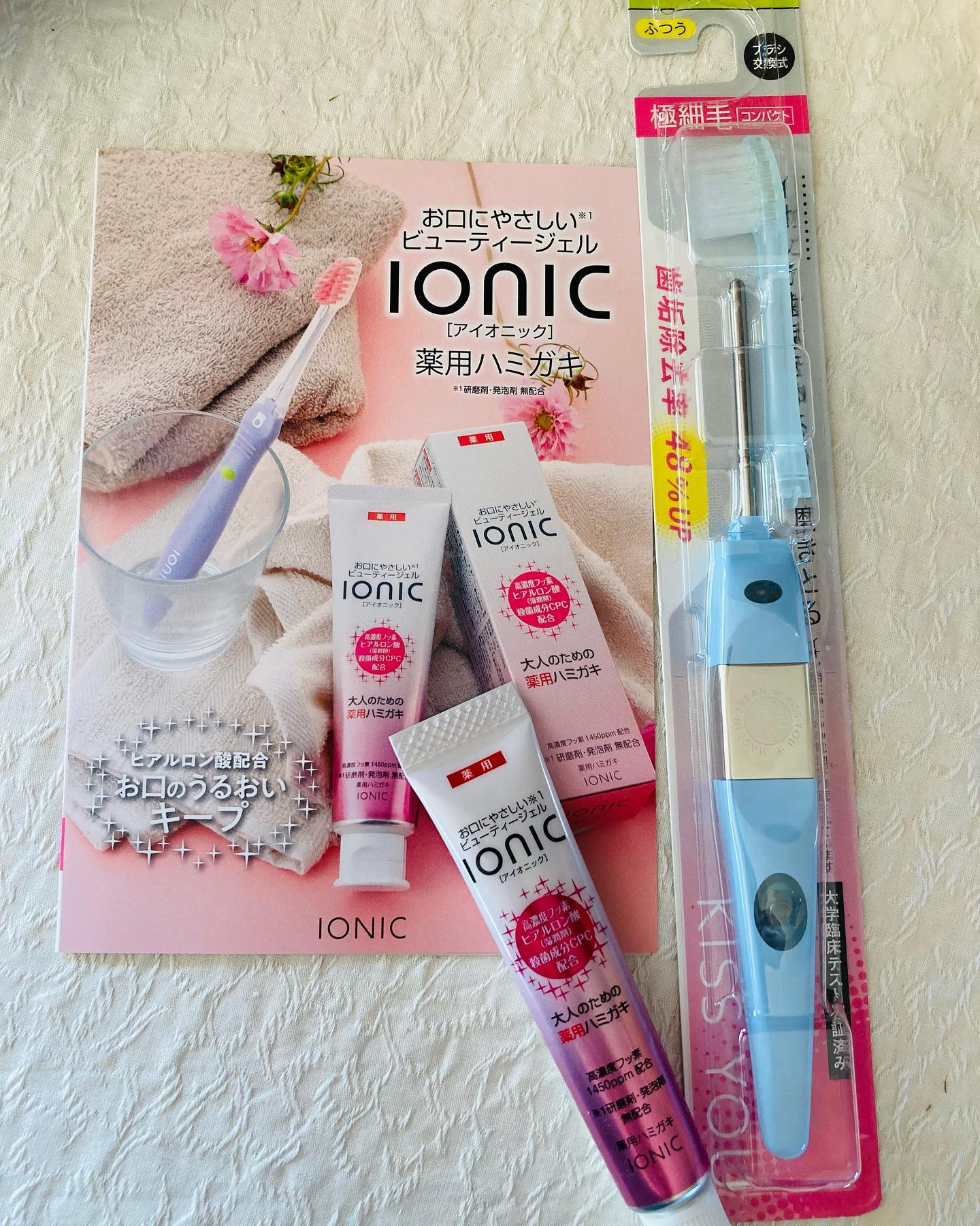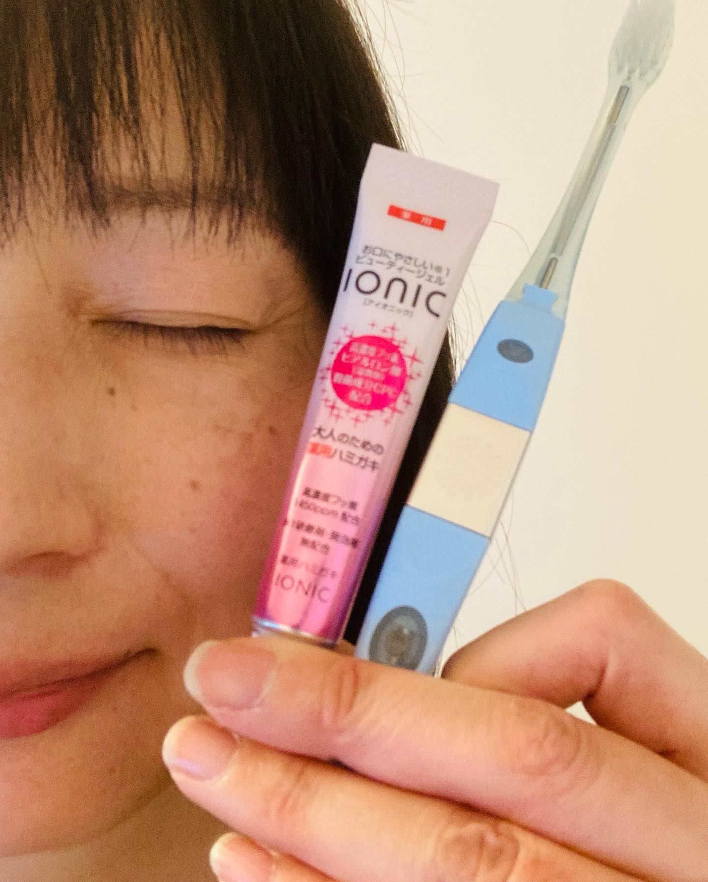 アイオニック株式会社様のイオン歯ブラシとヒアルロン酸配合ハミガキジェルの紹介です アイオニックビューティジェル キスユー極細コンパクト本体ふつうを 2週間ほど使用させていただきました イオン歯ブラシのおかげで歯垢を落としやすく、歯や歯茎に負担がすくないので歯磨きが楽になりました、ヘッドが細いのもあまり口を大きく開けなくてよく使用しやすかったです、またブラシ自体も細く隙間まできちんと磨けるのもうれしいです、アイオニックビューティジェルのおかげで歯磨き時間も短縮、マスクの中の状態も良く口臭が予防出来ていたと思います コーヒーや赤ワインが大好きなわたしにとって着色汚れが気になるので、使っていきたいです #アイオニックビューティー #ハミガキ #キスユー #マイナスイオン #ヒアルロン酸 #monipla #ionic_fan