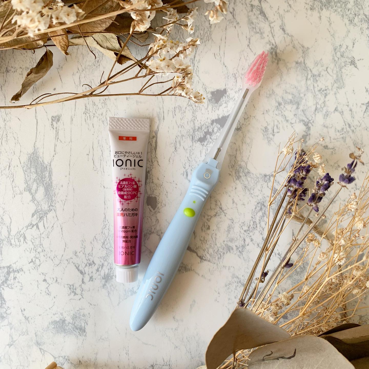 IONIC社製イオン歯ブラシは、内蔵電池によるマイナスイオンの効果で虫歯・歯周病・口臭の原因である歯垢を効率よく落とす歯ブラシです。