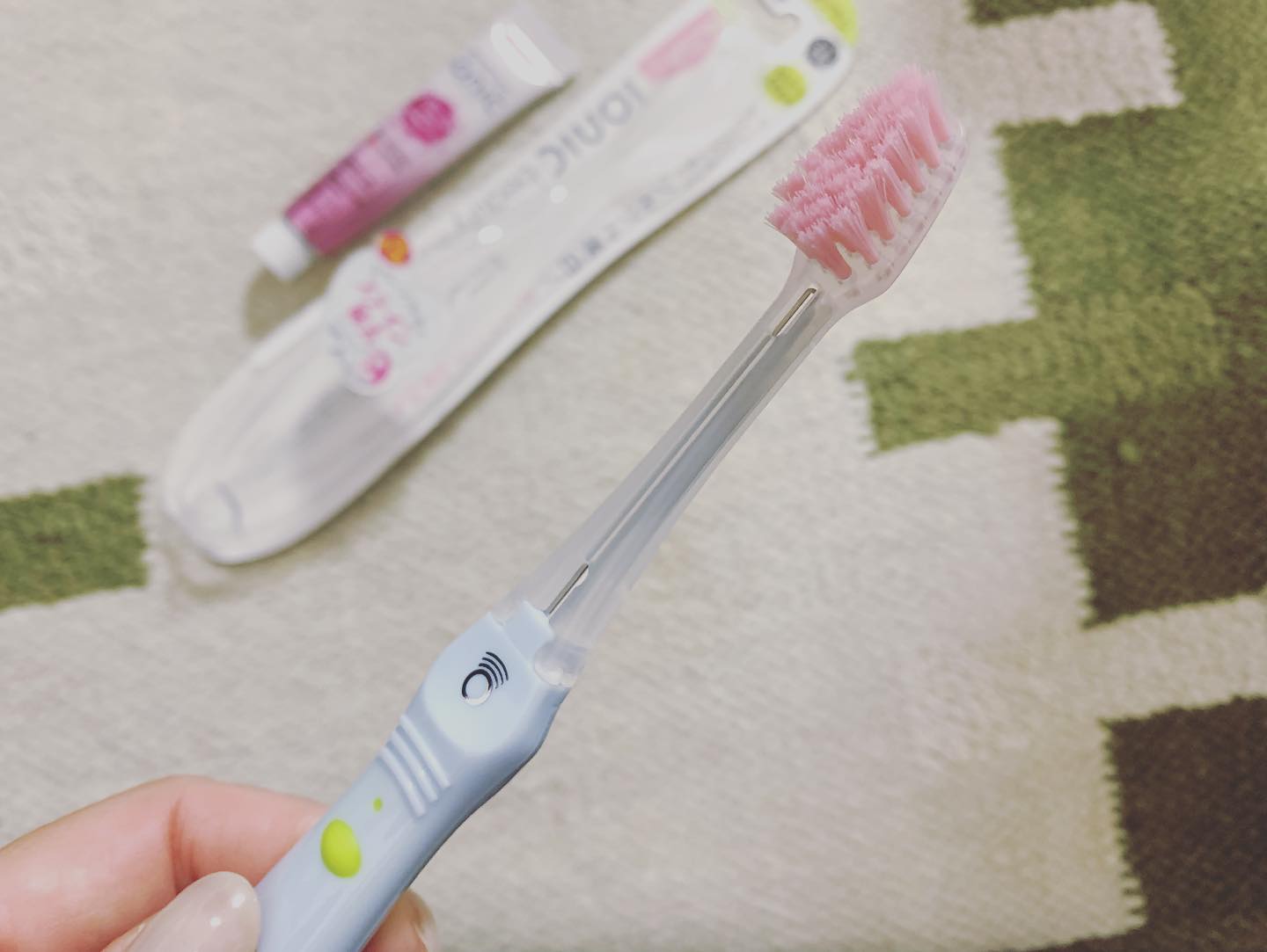 🎁レビュー投稿🎁, * #アイオニック株式会社 さんの #イオン歯ブラシ と #アイオニックビューティジェル を、お試しさせていただきました❤️🥰 同一メーカーの歯ブラシとジェルは 相性バッチリということで、 一緒に使ってみました感想をレポします🙋🏻♀️🙋🏻♀️ この歯ブラシは、リチウム電池が内蔵されており イオンが発生する仕組みを利用しています! 歯に大切な成分である フッ素の浸透を促進してくれるだけでなく、 知覚過敏にも効果があるそうです! フッ素は虫歯予防になるので、 しっかり入り込んでくれるのは嬉しいです😂 そして、電気のちからで歯垢を落とす効果が✨ 使用感は、普通の歯ブラシと変わらず使いやすい🙆🏻♀️ どうせ同じ動作をするなら、 イオン歯ブラシで、より歯のためになるケアを してあげたいなと思いました🐥🍀 ちなみに、緑のボタンを押すと光り、 電池の残量を教えてくれるそうです😮 ※ランプが光ったら、電池が残っているとのこと! さらに、ジェルにはヒアルロン酸まで配合! マイナスの電気を帯びているヒアルロン酸が、 イオン歯ブラシにより、口内全体に押し付けられ 潤いが保たれるとのこと❤️ お肌のスキンケアではよく聞きますが お口にもいいとは、初耳でした😮💦 お口が乾燥すると、口臭の原因にもなるので 保湿効果があることにより、対策もできそうですね👍🏼 普段は泡立つタイプの歯磨き粉を使うので ジェルだと磨けているのか不安でしたが、 歯へのダメージ軽減や、 歯磨き後のすすぎ回数の抑制ができるので ジェルを使い続けるのもいいかなと思いました🌷 お味は、柑橘系のガムのような ほんのり甘酸っぱいお味でした💕 ミントで爽快感!という感じではないのですが 好きな味だったので、問題なく使えました🕊 他にも、タバコのヤニの除去、 着色汚れの防止などの効果もあるので、 お口のトータルケアとして、 日々の生活に取り入れてみるといいかもです❤️ ちなみにこちらのブラシは交換式💡 摩耗によりダメになってしまったブラシ だけを取り替えることができるので、 とってもエコで経済的ですね😊 #アイオニックビューティー #ハミガキジェル #ヒアルロン酸 #ハブラシ #歯周病 #monipla #ionic_fan