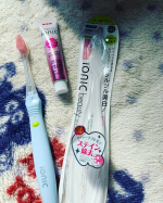 アイオニックビューティー イオン歯ブラシ アイオニックビューティジェル グリップの裏に付いている黒のラバー部分を持つことでマイナスイオンを帯びます。 マイナスイオンのパワーとラバーソフト毛の効果で、歯垢を落としやすくしステインを除去する効果が期待できます! 黒い部分を触らなきゃいけないと思い気になって仕方ありませんでしたが、どう握っても裏の黒い部分を握ることができます✨ ピンクのブラシ部分はちょうどよい硬さでした。ピンクが可愛くて気分が上がる😊ブラシ部分は消耗してきたら変えることができます。 歯磨き粉には高濃度フッ素が入っており虫歯予防にも。爽やかな柑橘系のような味や香りで私は気に入りました。 最近変えた歯磨き粉が気に入らなくてなんだか嫌だなぁと思っていたところ、こちらを使ってみたら!歯がツルツルになりとても満足です✨ このツルツルした感じが最高♥️ イオン導入によりフッ素が象牙細管を塞ぐことにより、知覚過敏にも効果があるそうですよ✨ #アイオニックビューティー #ハミガキジェル #ヒアルロン酸 #ハブラシ #歯周病 #monipla #ionic_fan #イオン導入 #知覚過敏 #ツルツル 2022/04/09