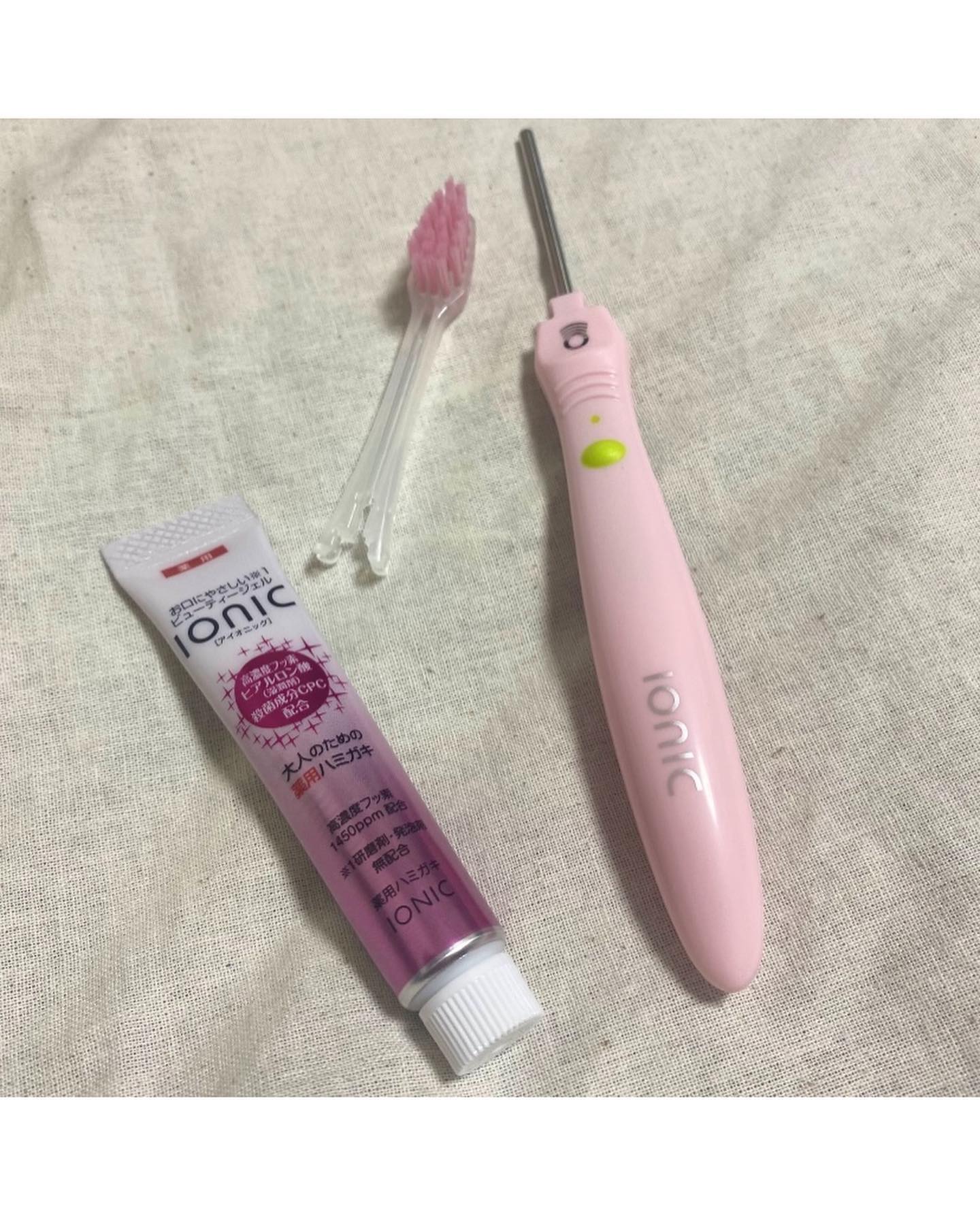 . . ▶︎アイオニックビューティー @ionic.kissyou 美白系イオン歯ブラシ ヒアルロン酸配合ハミガキジェル 次世代型イオン歯ブラシに 美白効果を加えたハイブリッド商品が登場! イオン歯ブラシ✖️歯磨きジェルを1ヶ月 お試しさせて貰ってそのレポ🪥🪥 歯磨き中の写真公開することなんて 滅多にないからなんか恥ずかしい🫣 歯を見せないようにと思ったらほっぺた ぷくってしてなんかフグみたい🐡🐡笑 この歯ブラシは、電動歯ブラシじゃないけど 背面の黒い部分に手を当てて磨くことで イオンが発生するみたいで😳😳 ジェルのフッ素を歯に浸透を促進させる効果と イオン歯ブラシの相性が抜群🫶💕 私は、このジェルなんともお気に入り♥️♥️ オブラートに包まれた感じになるし、 香料がグレープフルーツミントタイプで ミント!って感じじゃないから私は好み🥰 ミント感強い方が口の中すっきりしていい! って人には物足りないだろうけど🤔🤔 ジェルが特に気に入ったから ヘッド交換してライン使いのリピ決定🪥 #アイオニックビューティー#ハミガキジェル#ヒアルロン酸#ハブラシ#歯周病#monipla#ionic_fan#アイオニック#歯ブラシ#マイナスイオン歯ブラシ