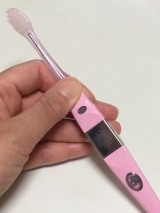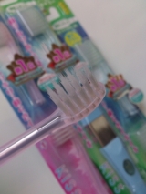 歯ブラシ(2本)と、替えブラシ(4個)のセットが届いたよ この歯ブラシ「KISS YOU」は、ちょっと普通のものと違って 写真の親指で抑えている金属板に触れながら磨く歯ブラシなの そうするとね、マイナスイオンで歯垢スッキリってことなんですが ホントにすごい! 磨いた後に舌で触ると… 2016/07/15