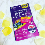 3粒当たりにルテインを24mg、さらにビルベリーエキスと菊花エキスを各30mg、カシスエキスを6mg配合。