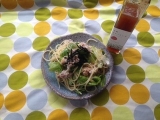 ママブロネタ「昼ごはん」からの投稿モニプラ、石神邑のうめドレッシングを使って、さっぱり梅風味の野菜炒めを作りました>鶏モモと野菜をフライパンに入れて、サッと焼いたあと、ドレッシングを振りかけたら、蓋をして蒸し焼きに火を通すと、お野菜たっぷり食べれます(材料)(1人分)鶏モモ:80gもやし:1/2… 2014/10/30