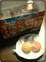 北海道名菓の白い恋人で有名な石屋製菓のクリスマス限定商品 ISHIYAクリスマスクッキーボックス です(^∇^) 横から見るとこんな絵が描いてあってかわいいでしょう? ( ´艸`) 中には小さめのクッキーがたくさん詰まっています ふたを開けると… 2012/12/10