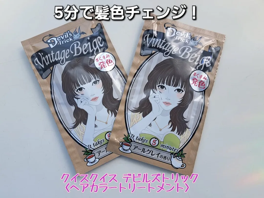 石澤研究所様から商品提供頂きましたꕤ︎︎·͜· 5分で髪色チェンジ!簡単+イオンカラー®️ のヘアカラートリートメント使ってみました🎵 。.ꕤ………………………………………..ꕤ.。 クイスクイス デビルズトリック 〈ヘアカラートリートメント〉 ヴィンテージベージュ ~まどろみの午後❤︎アールグレイの香り~ 。.ꕤ………………………………………..ꕤ.。 傷んだ髪ほどよく染まるヘアカラートリートメント。 5分で染まる&素手でOK!保湿成分inで髪にたっぷりのうるおいを与え、ツヤ感UP!髪のダメージも集中ケアしてくれるそう✨ こっくりとしたテクスチャー。 垂れにくいので塗りやすいです◎ 塗布してブラシで馴染ませ、5分待ったら流すだけなのでとっても簡単🙌🏻 色味が綺麗でイイ香り♡ 流した後のサラサラ感も良き🥺 シャンプーすれば約1週間でもとの髪色に戻るので 気軽に髪色チェンジが楽しめます👌🏻 ̖́- 元の髪色・傷み具合・髪質によって仕上がりの色は多少違いはあると思うけど手軽に染めたい方は是非𝑪𝒉𝒆𝒄𝒌してみてね🍀*゜ #PR #石澤研究所 #デビルズトリック #カラートリートメント #ヘアケア #セルフカラー #抜け感 #インナーカラー #ヘアカラー #チャーミングピンク #ヴィンテージベージュ #ミスティックブルー #ニュアンスカラー #くすみカラー #monipla #ishizawalab_fan