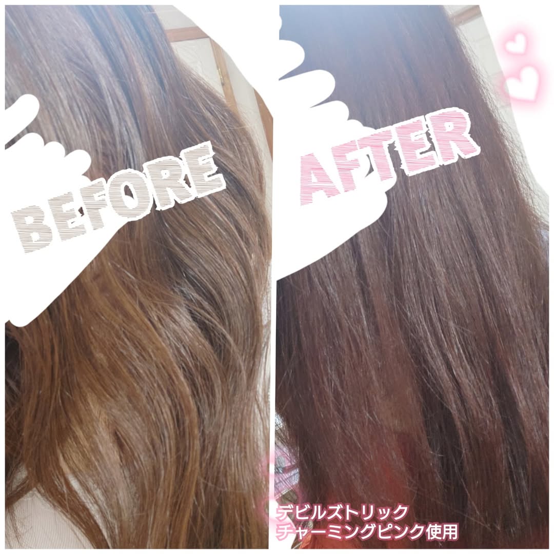 夏のイベントに向けて、お手軽イメチェン〜! 高発色カラートリートメントのデビルズトリックです! 私は暖色系のヘアカラーに憧れていたので、 デビルズトリックのチャーミングピンクを使用してみました! ロングヘアなので2袋使用しています〜 もともと、色の抜けた痛んだ髪色だったのですが、、 写真の通り、めちゃくちゃ可愛いピンクブラウンになりました♡♡ 嬉しすぎる〜! 使用方法も、素手で使えて簡単でした🎶 1週間で元の色に戻るそうなので、 この髪色を楽しんでいきたいと思います! #PR #石澤研究所 #デビルズトリック #カラートリートメント #ヘアケア #セルフカラー #抜け感 #インナーカラー #ヘアカラー #チャーミングピンク #ヴィンテージベージュ #ミスティックブルー #ニュアンスカラー #くすみカラー #monipla #ishizawalab_fan