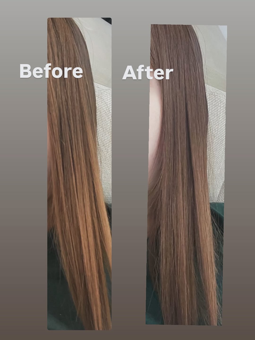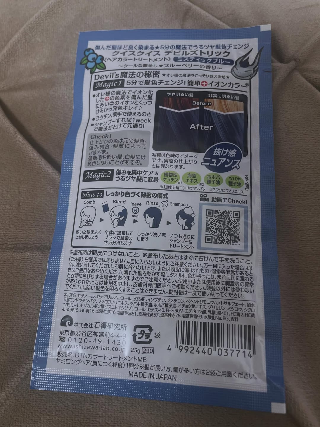 育休中で、普段できないカラーを楽しんでいます🥹🩵🧡 一度色を入れると当分変えられないので ちょこちょこ気分で変えたい私は クイスクイス デビルズトリック ミスティックブルー を使ってみました✨ 写真だと分かりにくいのですが、 実際見ると少し青みがかった茶色になりました🫶 良い感じのニュアンスカラーになり大満足です!! #PR #石澤研究所 #デビルズトリック #カラートリートメント #ヘアケア #セルフカラー #抜け感 #インナーカラー #ヘアカラー #チャーミングピンク #ヴィンテージベージュ #ミスティックブルー #ニュアンスカラー #くすみカラー #monipla #ishizawalab_fan