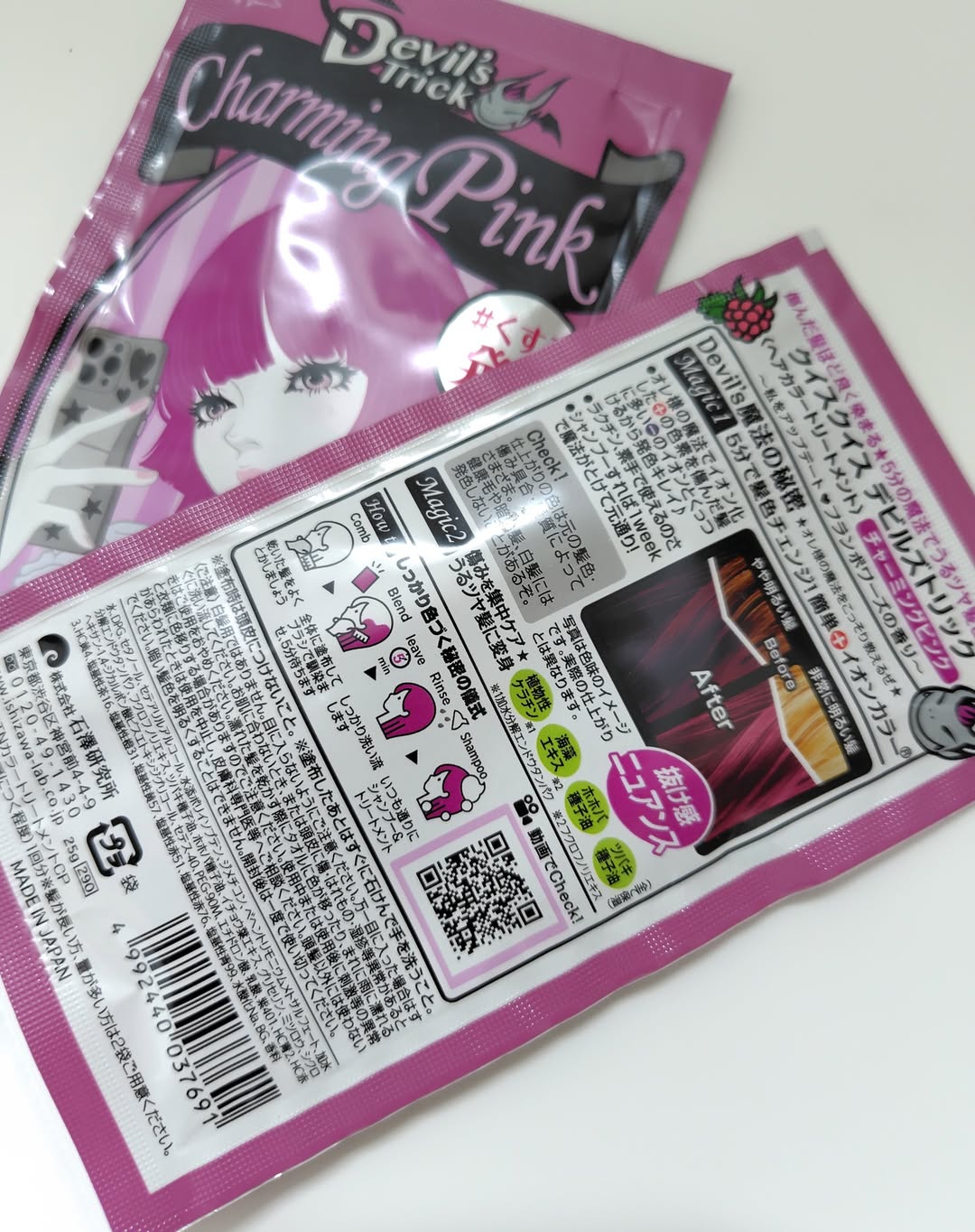 約1週間でもと通り『クイスクイス デビルズトリック』 に新色˗ˏˋくすみカラーˎˊ˗ が登場~⋆ クイスクイス デビルズトリック チャーミングピンクをお試ししました! 【チャーミングピンク】の女の子は、 自分磨きが大好き、自己肯定感高めの 流行に敏感なギャルをイメージ。 甘すぎない大人っぽさを兼ね備えた、 フランボワーズの香り 素手で使用◎なんですが、手に色が付きやすく落ちにくいので、私は手袋着用しています。 より傷んだ髪に色が入りやすい特性がありますが、健康的な髪にも使用◎ インナーカラーにと思い、内側のみに使用したのですが、可愛い色がちらっと見える感じがお気に入り~♡ 約1週間でもと通りの髪色になるので、 イベントや気分を上げたいときにおススメです! #PR #石澤研究所 #デビルズトリック #カラートリートメント #ヘアケア #セルフカラー #抜け感 #インナーカラー #ヘアカラー #チャーミングピンク #ヴィンテージベージュ #ミスティックブルー #ニュアンスカラー #くすみカラー #monipla #ishizawalab_fan