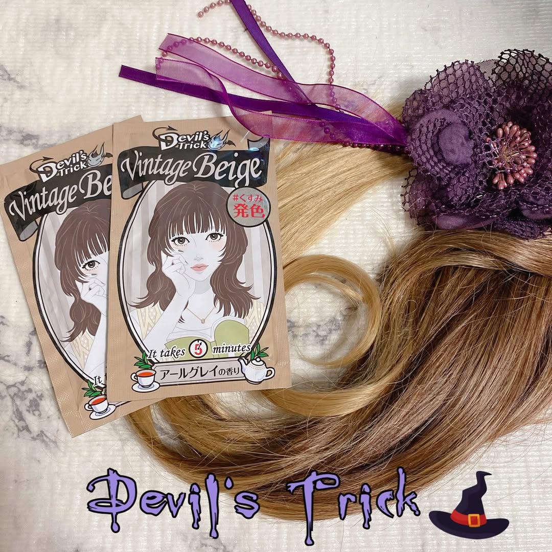 . 髪色変えたい!! でも、思うようなカラーにならな かったり・・・会社や学校の規則で ヘアカラー禁止!!なんてことも~💧 今日は、悩みともさようなら デビルズ トリック☆で 時短イメチェン(*^艸^*) 待ち時間は、たったの5分⏱ ̖́- 毛染めみたいにツンとしたいやな 臭いもないし、髪にも優しい。 だって、トリートメントヘアカラー なので髪もしっとりして艶々✨️ 白髪染めのトリートメントヘアカラー これって1回じゃ染まらないし 置き時間も長い(⌯˃̶᷄ᗝ˂̶̥᷅⌯) あ!デビルズ トリックは白髪染め ではありませんよ♪ 白髪は、染まりにくいので白髪多めの 方には不向きかも!? 今回私が使ったのは デビルズトリック ヴィンテージベージュ 香りもよくて、さっとカラーチェンジ。 紅茶の香りがしますよ☕️🍃 乾いた髪に、デビルズトリックを塗ります。 5分放置して、後はシャンプー&トリート メントするだけ。 とっても簡単でしょ!! カラーナインナップも豊富なので 絶対に好みのカラーがみつかる! 素手で使えるので◎ タオルドライしても、タオルが汚れない。 白髪染めは、色のこりして洋服が汚れる こともあるよね(>_<) 手についたヘアカラー洗い流すと! きれいに落ちます。 手袋不要でした。 すっごく傷んだハイダメージヘアですが デビルズトリック使ったら、しっとり していい感じ♪ 高いトリートメント効果が◎ たった5分で、どうしてこんなに きれいに染まるの!? イオン化した+の色素が 傷んだ髪に多い-イオンとくっつくから たった5分で発色キレイなのです! しかも、このカラーは1週間持ちます。 だから、夏休みだけ~ お休みの日だけ!なんて時にぴったり。 学生さんやイメチェンしたい! イベントのときだけヘアカラーしたい♪ なんて方にオススメのヘアカラーです。 これから夏休みになるので 学生さん、このヘアカラー使って みませんか。 髪も綺麗になるし、本当にお勧め!! #PR #石澤研究所 #デビルズトリック #カラートリートメント #ヘアケア #セルフカラー #抜け感 #インナーカラー #ヘアカラー #チャーミングピンク #ヴィンテージベージュ #ミスティックブルー #ニュアンスカラー #くすみカラー #monipla #ishizawalab_fan