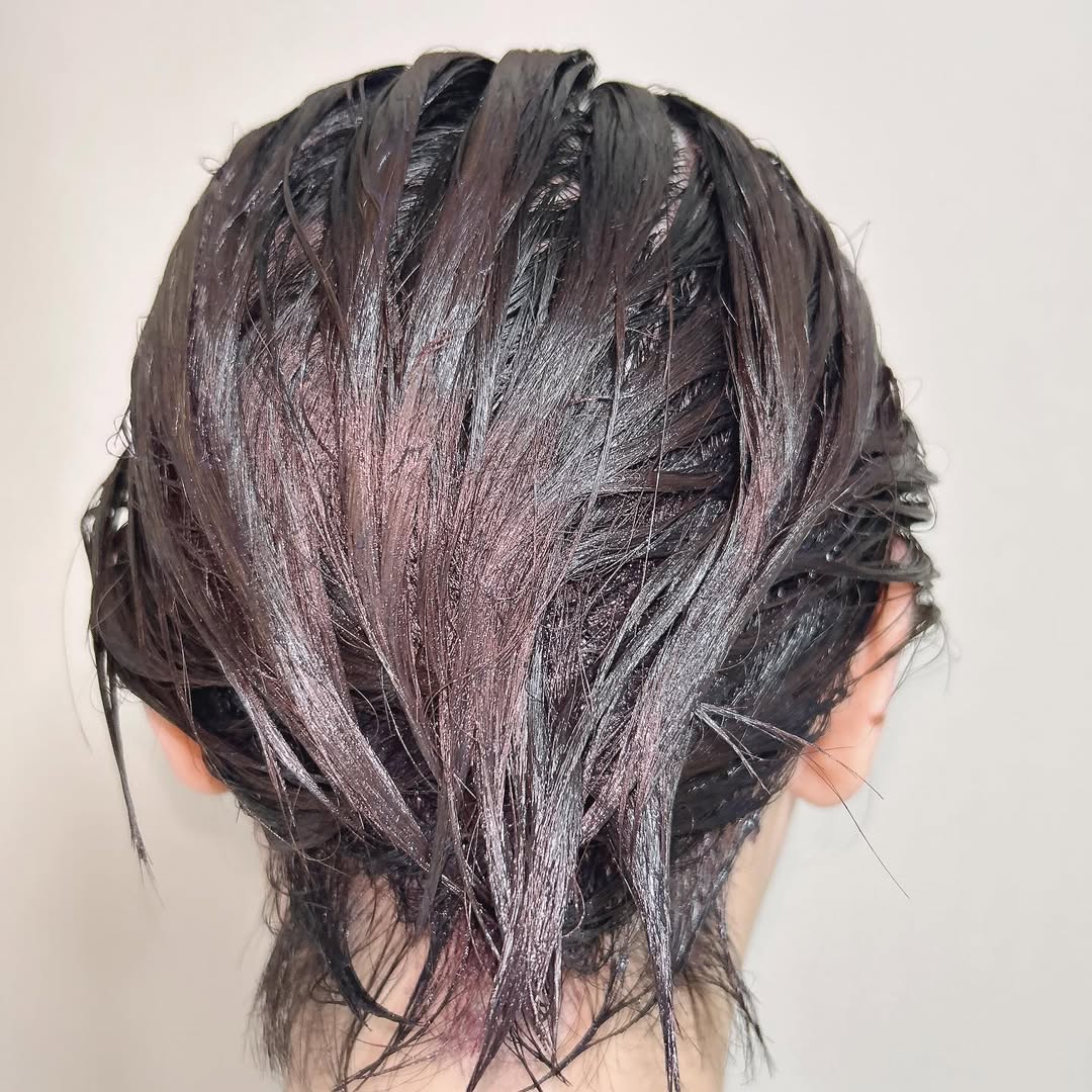 クイスクイス デビルズトリック ミスティックブルー🫐 発売前にお試しさせていただきました! 素手で塗って5分放置でOKとのことでしたが、手袋はした方がいいですし、20分くらいは置いたほうが染まりました! トリートメント効果があるので、髪が傷んでいても使えるのが嬉しいですね☺️ 約1週間でもとの髪色にもどるから、気軽に髪色チェンジできて、がっつり染める前のイメージが湧きやすいです🤍 一袋が25gとかなり少ないので全頭染めたい人はかなり個数が必要です⚠️ 茶髪に使うとオレンジ味が抑えるくらいになって、青くはなりませんでした🥹 #PR #石澤研究所 #デビルズトリック #カラートリートメント #ヘアケア #セルフカラー #抜け感 #インナーカラー #ヘアカラー #チャーミングピンク #ヴィンテージベージュ #ミスティックブルー #ニュアンスカラー #くすみカラー #monipla #ishizawalab_fan