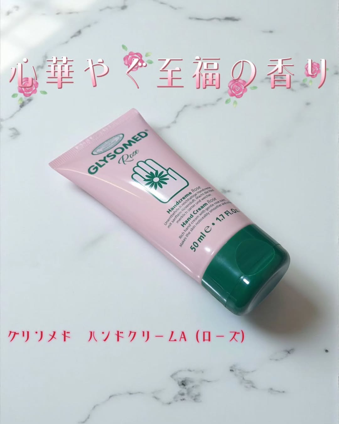 グリソメド ハンドクリーム A ⋆┈┈┈┈┈┈┈┈┈┈┈┈┈┈┈⋆ 日本より寒さや乾燥の厳しいカナダで愛され続けている 「グリソメド」。 そのグリソメドに今年から ローズの香りが仲間入り! 日々の水仕事や手洗い習慣による手荒れ、 カッサカサの乾燥手肌をしっかり守ります。 ⋆┈┈┈┈┈┈┈┈┈┈┈┈┈┈┈⋆ こっくりと少しかためな濃厚クリームテクスチャー。 体温でするりと伸ばしやすく、しっとりしつつもベタつかないサラサラ仕上がり。 使用後はぬるりとした感覚がなく、少しパウダリーな仕上がりなのですぐサラッとしてくれてとても使いやすいですね(,,>᎑<,,) すぐスマホが触れるところがお気に入りポイント💡 上品でみずみずしいバラの香り。 ふんわりとふくよかな香りにうっとりします❤ 香りは結構強めですが、ダマスクローズ精油を使用しており 自然なバラの香りがするのでキツいとは感じなかったです😊 高保湿ながらも香りも楽しめるハンドクリームでした🤗✨ #PR #石澤研究所 #グリソメド #ハンドクリーム #ハンドケア #保湿ケア #乾燥ケア #ローズ #数量限定 #monipla #ishizawalab_fan #バラの香り #ダマスクローズ #高保湿 #ロングセラー