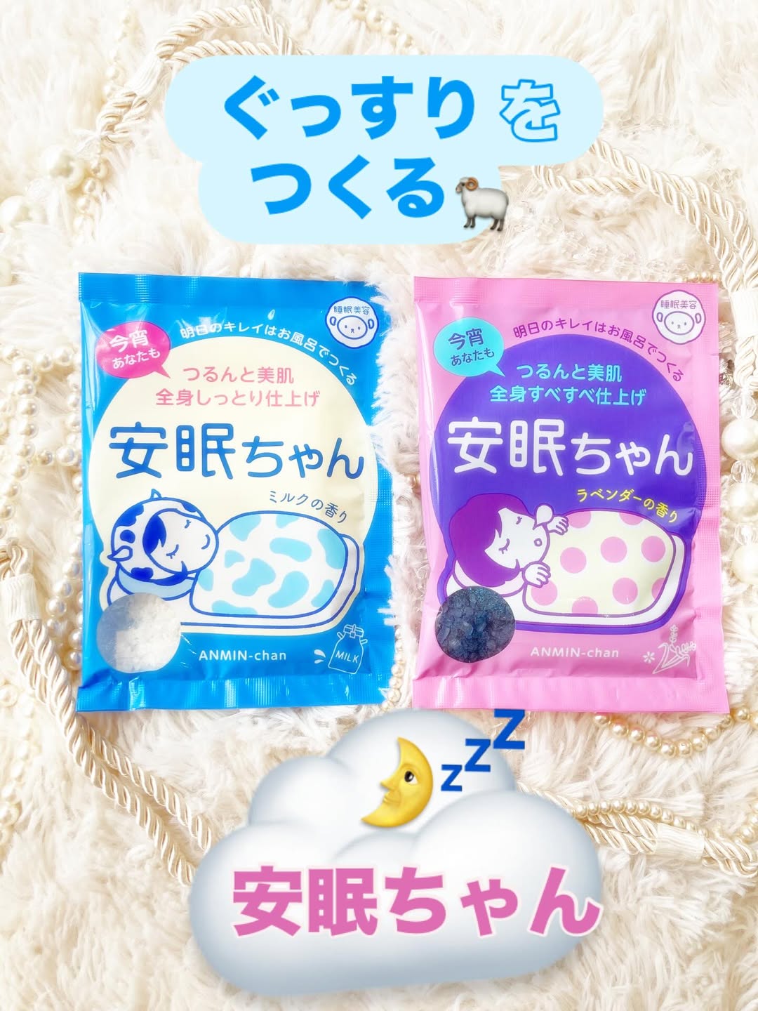 🕊𓂃 𓈒𓏸◌ ✼••┈┈••✼••┈┈••✼••┈┈••✼••┈┈••✼ 睡眠美容 安眠ちゃんラベンダーの香り&ミルクの香りを お試しさせて頂きました🤗💞 ୨୧┈┈┈┈┈┈┈┈┈┈୨୧ 公式アカウント @ishizawalab ୨୧┈┈┈┈┈┈┈┈┈┈୨୧ ラベンダーとミルクの香りで安らぎを誘い、海塩や美容成分で肌をしっとり整えながら心身を温める入浴剤です。 💛特徴💛 🔸共通成分:海塩(保湿)、ミネラル、ラベンダー精油、スキムミルク、ヒアルロン酸Na、水溶性コラーゲン、セルロースガム 🔸湯上りはポカポカ、つるつるすべすべの美肌へ! 🔸ラベンダーの香り:リラックス効果のある香りで、心身を落ち着かせ睡眠前のバスタイムに最適 🔸ミルクの香り:ほわんと柔らかな香りで、滑らかなお肌に整える「美容のビタミンB2」成分配合 🌿使い方🌿 ➡️浴槽のお湯(約150~200L)に、50gパッケージ1包またはスプーンすりきり2杯(たっぷりサイズの場合)を入れる ➡️よくかき混ぜて溶かしてから入浴 ➡️残り湯は放置せず衛生的にも洗い流してね! さっそく使ってみます🛀🫧 🟣ラベンダー 森林の中にいるような自然で落ち着ける香り。ほのかに香り強すぎず、入浴中とてもリラックスできました。 海塩が配合されており、湯上りは肌がつるんと滑らかになりました。 夜中目が覚めることなく、ぐっすり眠れた感があります。 ラベンダーの香りが心身のリラックスと安眠をサポートしてくれてるのでしょうね ⚪ミルク やさしいミルクの香りに癒されし、リラックスしたい時におススメです💖 白濁したお湯になり、海塩とつや肌成分が溶け込んでお肌がしっとり✨ お湯に溶けやすく、使いやすかったです。 個包装なので、旅行の時などに携帯でき、持ち運び用としても使えるのが嬉しいですよね☺️ パッケージのキャラクターもとっても可愛いらしくて、湯色の美しさもお気に入りポイント👍 視覚的にも癒さしてくれる商品です🪻 気になった方はチェックをよろしくお願いいたします 素敵な商品をありがとうございました🤗💕 ✼••┈┈••✼••┈┈••✼••┈┈••✼••┈┈••✼ 睡眠美容 安眠ちゃん(ラベンダーの香り) 容量:50g 価格:198円(税抜180円) 睡眠美容 安眠ちゃん ミルクの香り 容量:50g 価格:198円(税抜180円) ✼••┈┈••✼••┈┈••✼••┈┈••✼••┈┈••✼ #PR #石澤研究所 #睡眠美容 #安眠ちゃん #入浴剤 #入浴料 #お風呂 #バスタイム #monipla #ishizawalab_fan
