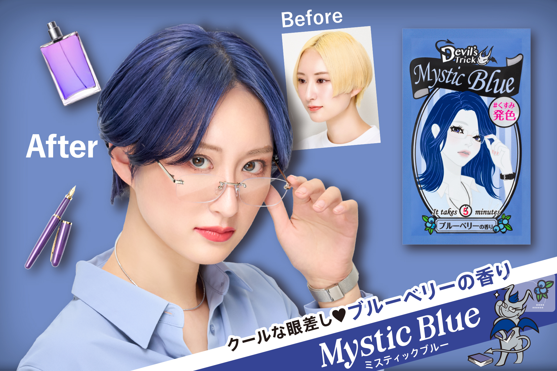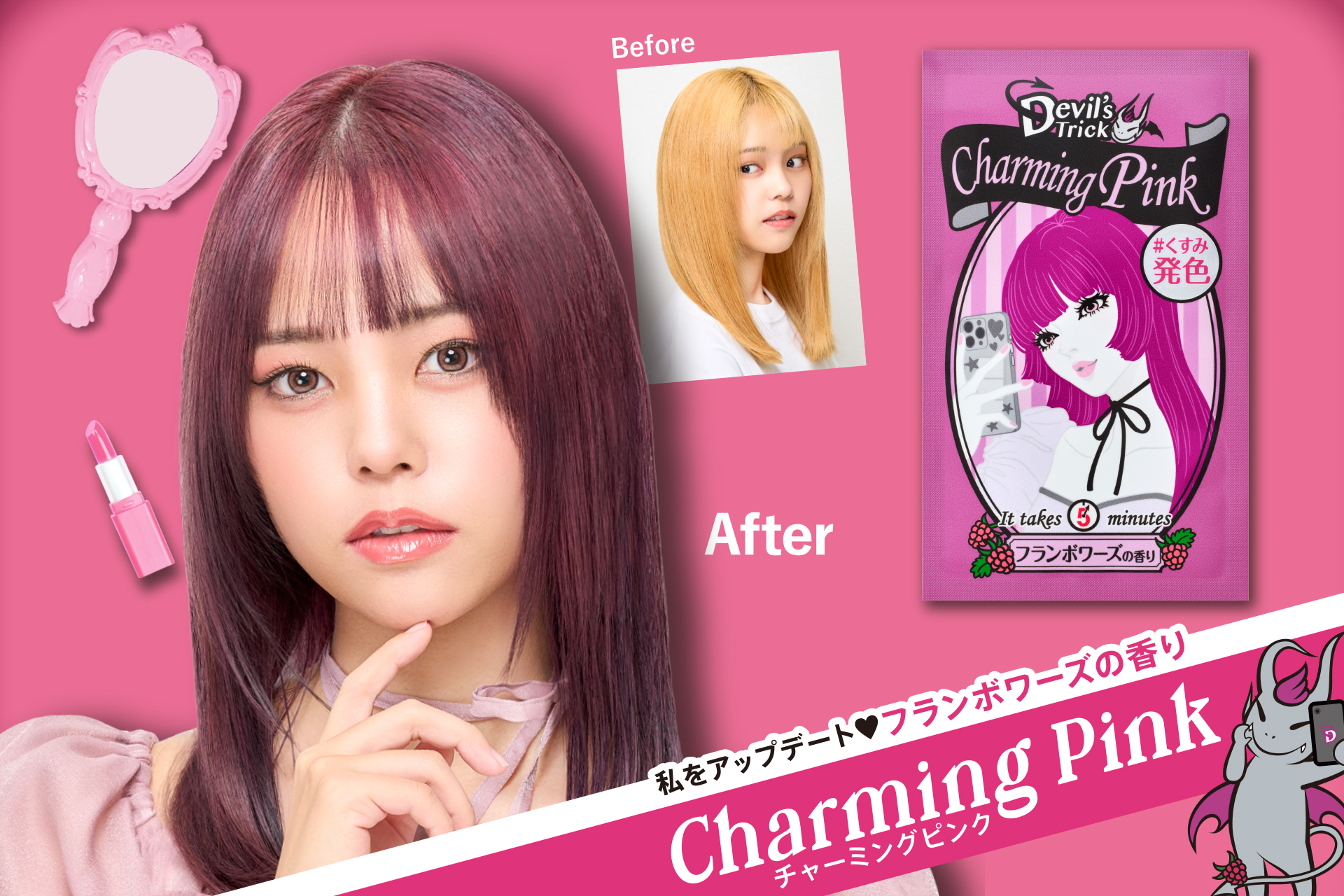 いつもはヘアカラーできないけれどお休みのときは短期間だけでもヘアカラーも楽しみたい。。!というときに便利なデビルズトリックのヘアカラー✨