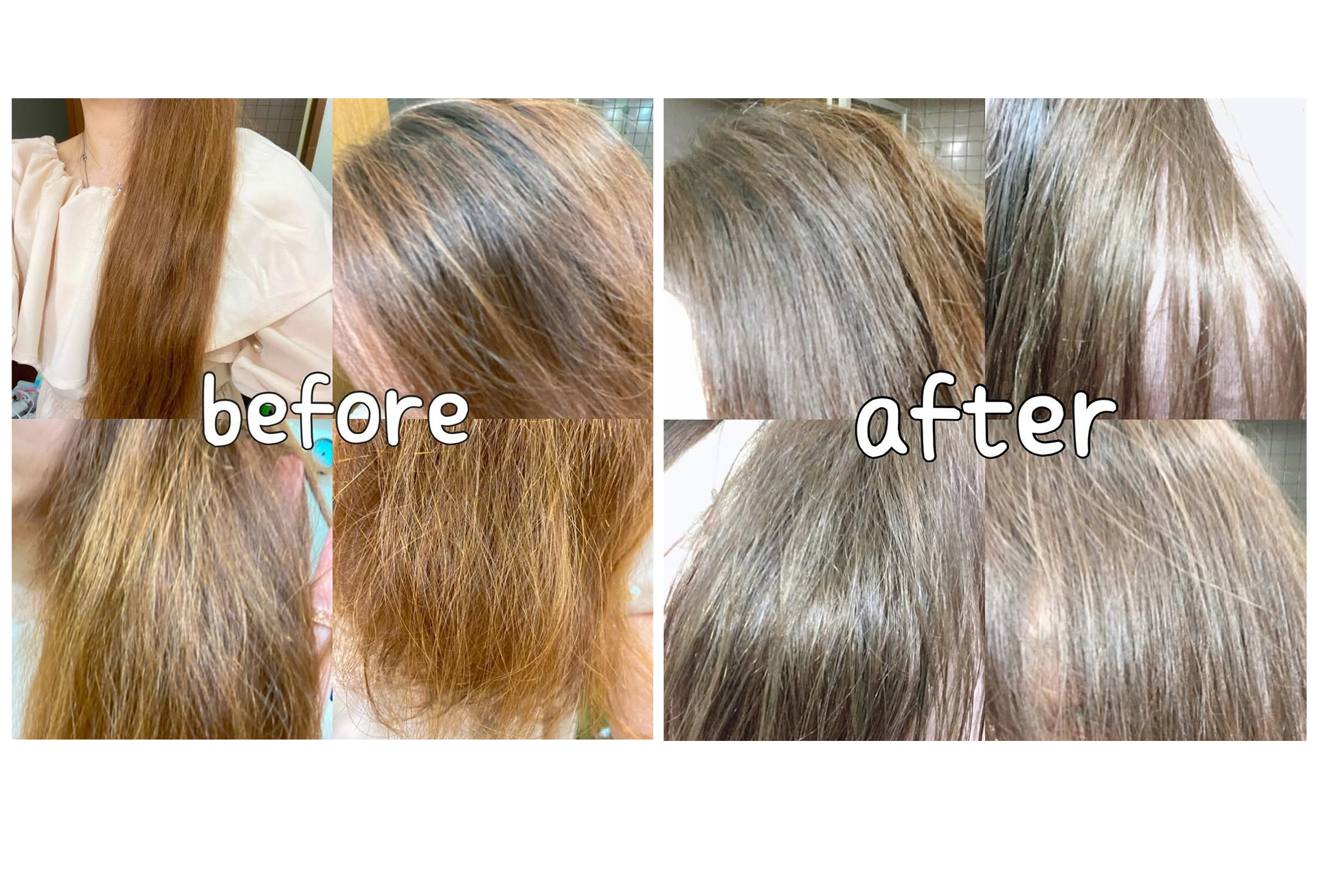 傷んでる部分ほどしっかり染まってるのが一目瞭然😂