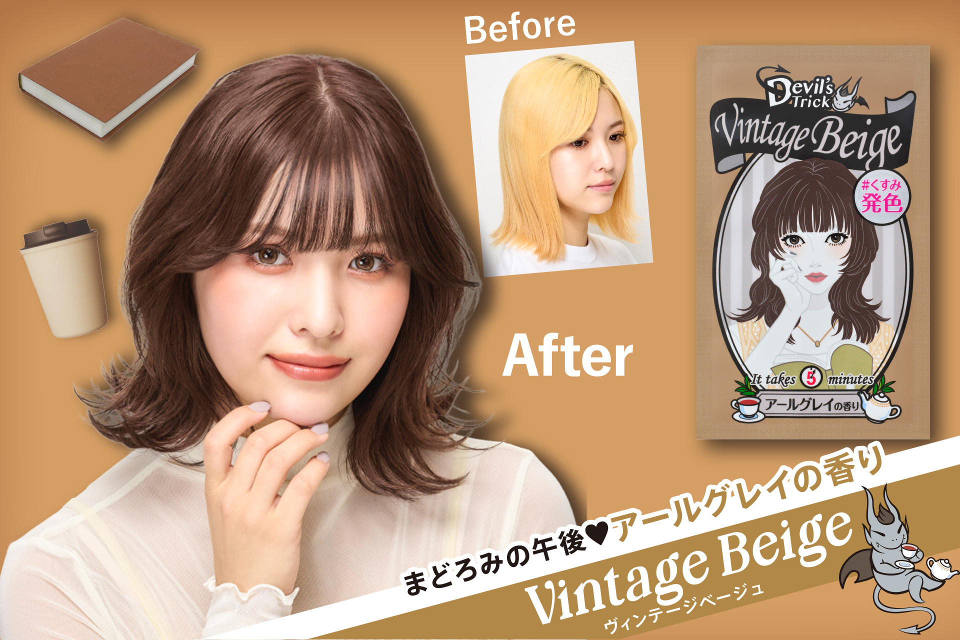 私はヴィンテージベージュをチョイスしました♥古着や喫茶店好きのアンニュイなサブカルガールをイメージしたカラーでくすみベージュに仕上がります。
