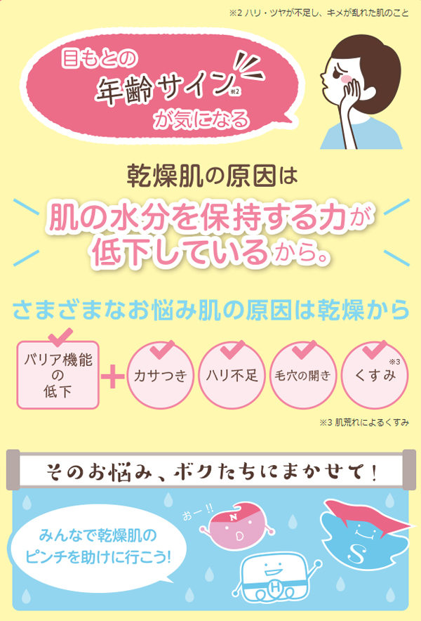 乾いた目もとは年齢サイン(※2)が現れやすくなります。