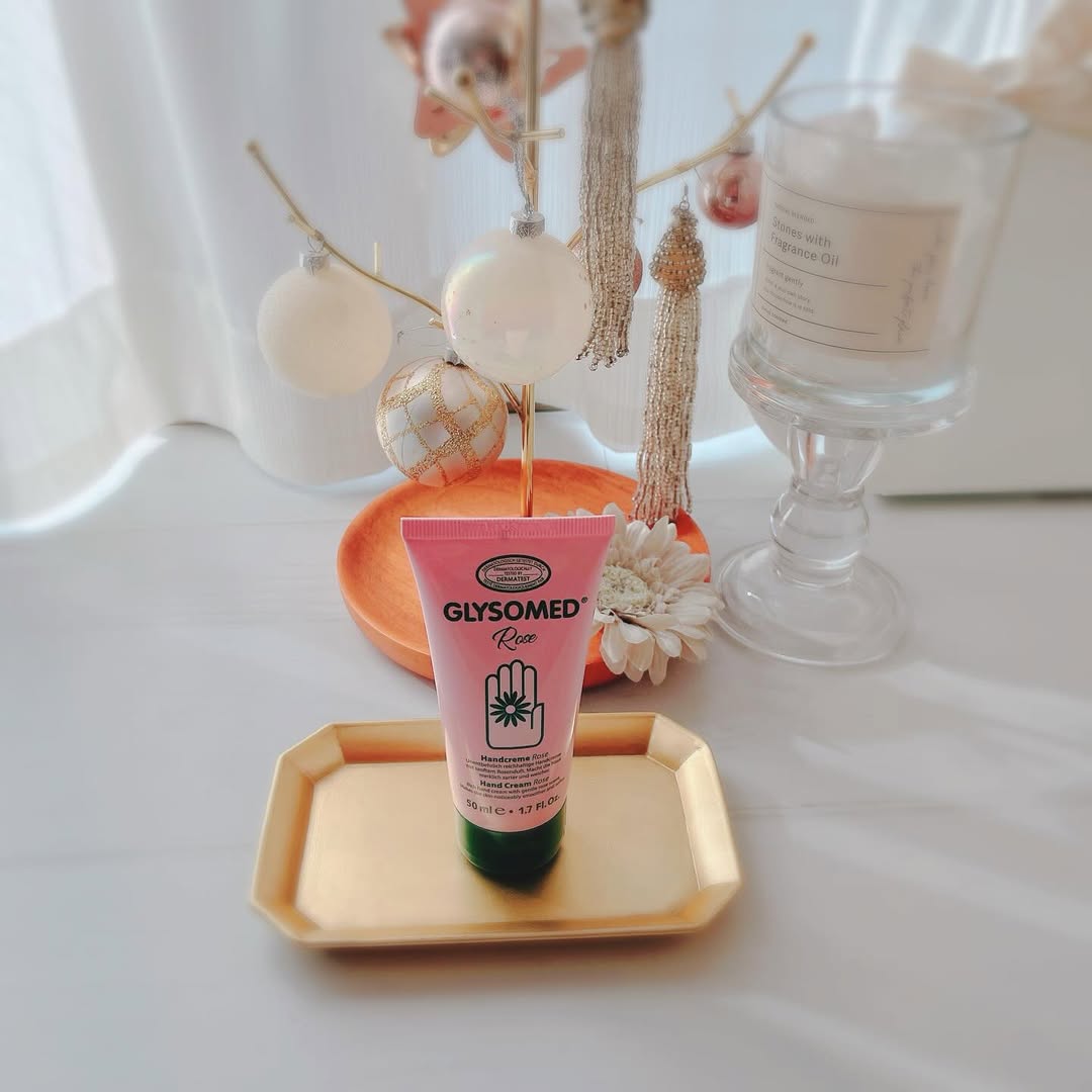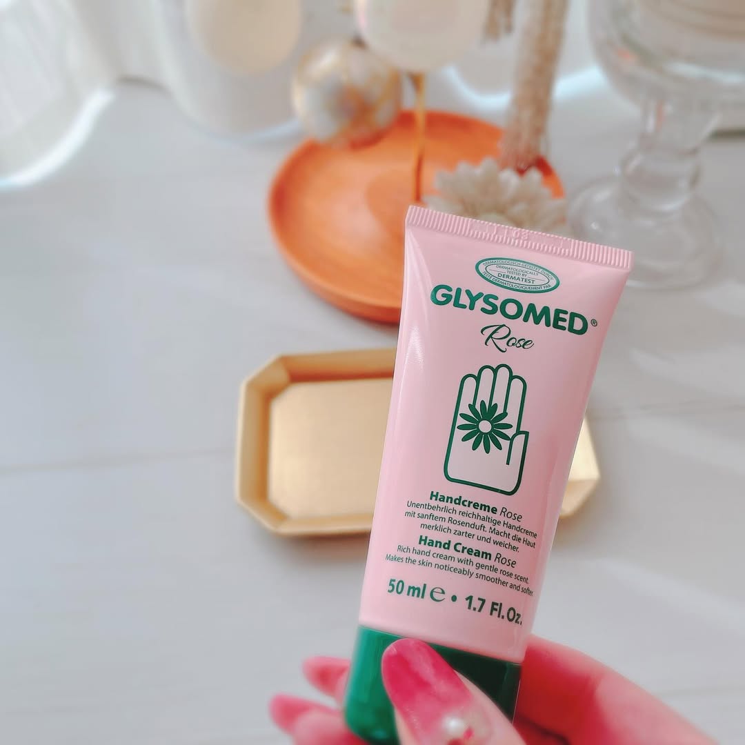 乾燥対策にハンドクリームを使っていますがハンドケアの時もお気に入りの香りに包まれながらケアできたらと思い、グリソメドのローズの香りのハンドクリームで癒しの時間を。。🌹