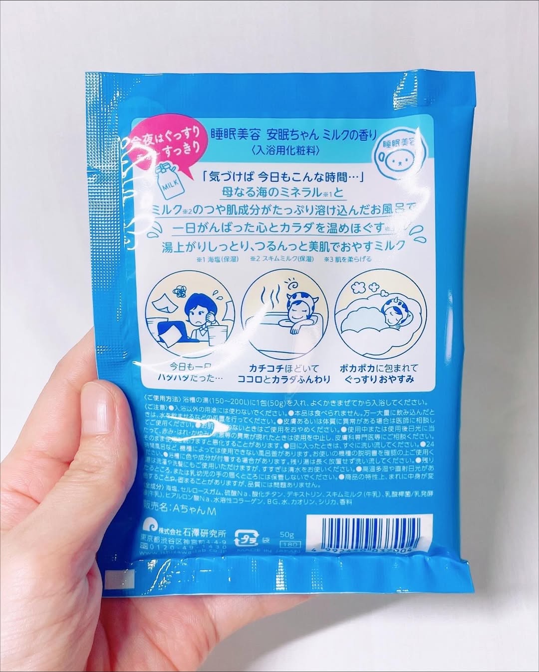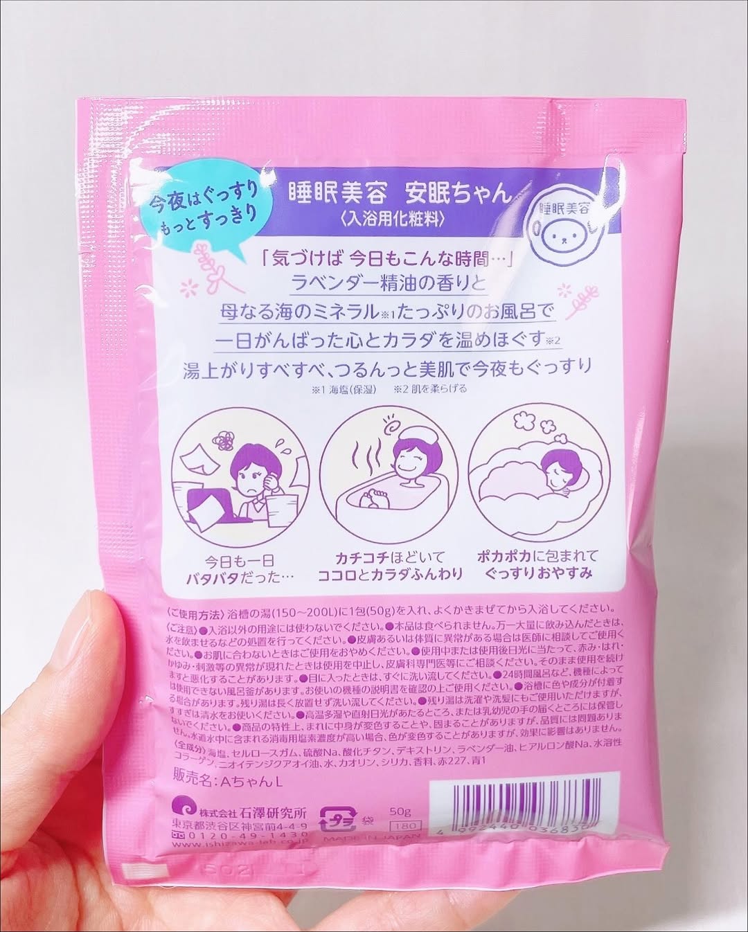 左) 製品名:睡眠美容 安眠ちゃん(ラベンダーの香り) 容量:50g 価格:198円(税抜180円) 右) 製品名:睡眠美容 安眠ちゃん ミルクの香り 容量:50g 価格:198円(税抜180円)