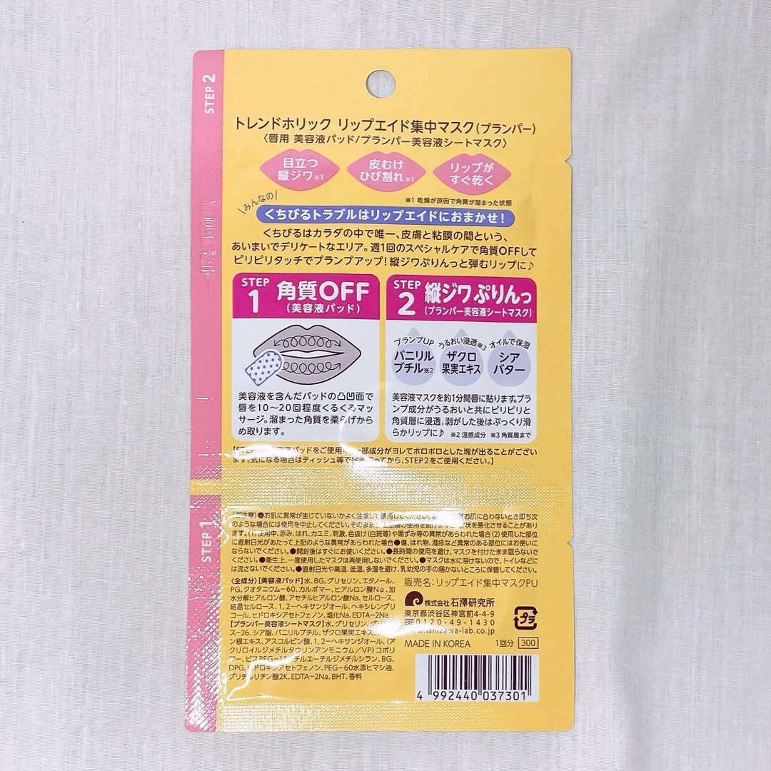 ・トレンドホリック リップエイド集中マスク ・トレンドホリック リップエイド集中マスク(プランパー) 容量:1回分 価格:330円(税抜300円)