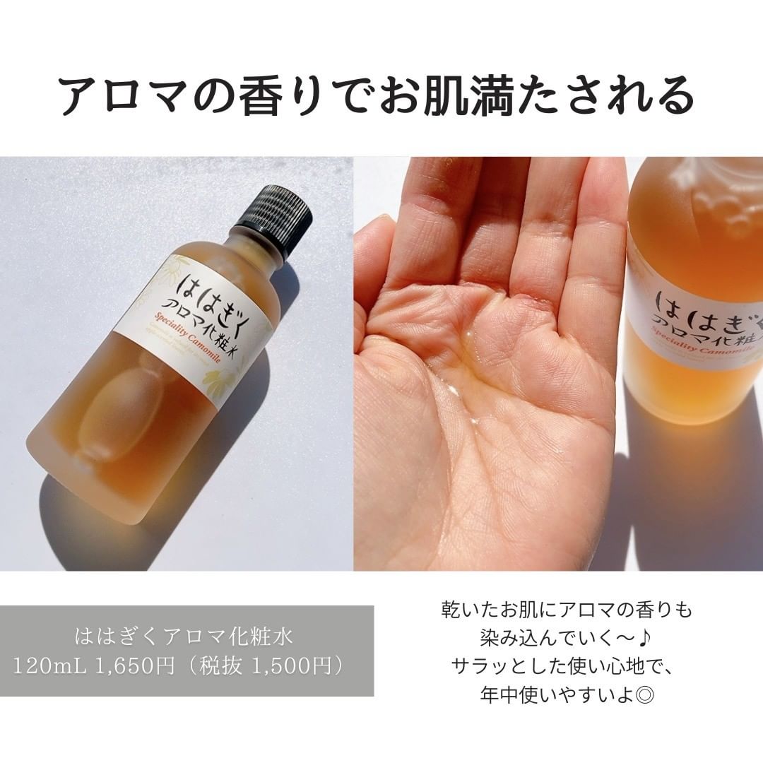 【カモミールとアロマのスキンケア一式】 毎日のスキンケア。時間にも気持ちにも余裕がなくて「面倒だな」と感じてしまう、義務的にお手入れしている…そんなことはありませんか? 「ははぎくアロマ」は、お手入れするたびに、うるおいだけでなく心もほぐれるような時間を感じていただきたい、そんな想いで作ったスキンケアです。 リラックスしたいときにうれしいハーブ「カモミール」と「ラベンダー」の精油をブレンドした香りは、使うたびに深く深呼吸したくなるよう。 乾いた肌と心に、うるおいを届けます。