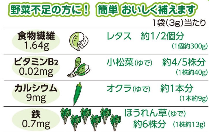 食物繊維・ビタミンB₂・鉄・カルシウム配合なので、